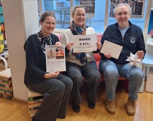 Im Rahmen der Ausstellung konnten in der Bibliothek 513 Euro an Spenden gesammelt werden. Zusätzlich stellte Leo Kummerer 300 Euro aus seinen Auftragsarbeiten zur Verfügung, sodass ein beeindruckender Gesamtbetrag von 813 Euro zusammenkam – ein absoluter Spendenrekord.
