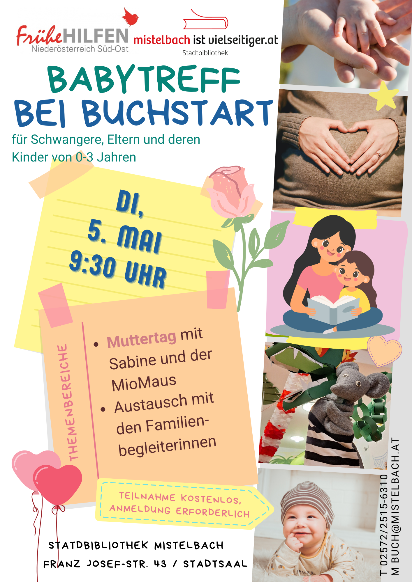 Am 5. Mai dreht sich bei Buchstart alles um den bevorstehenden Muttertag! Gemeinsam wollen wir eine kleine Geschichte hören, singen, spielen und vor allem die Mütter hochleben lassen.