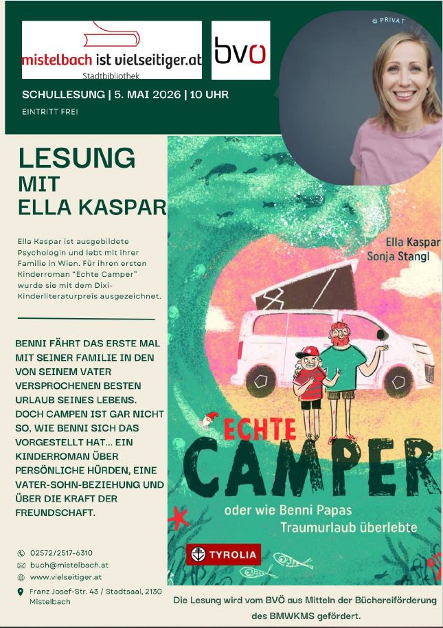 Die Lesung wird vom BVÖ aus Mitteln der Büchereiförderung des BMWKMS gefördert. Eintritt frei.